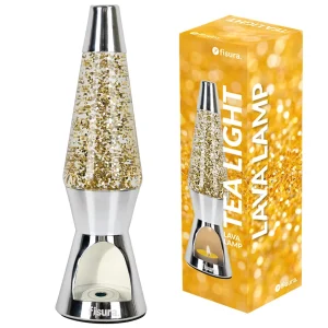 Lámpara de lava roja de 30 cm con base plateada y líquido transparente