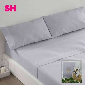 Claro de Luna 241 Gris Ribete Blanco Juego Sabana Burrito Blanco