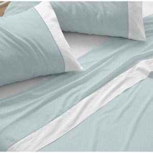 Claro de Luna 241 Azul Ribete Blanco Juego Sabana Burrito Blanco