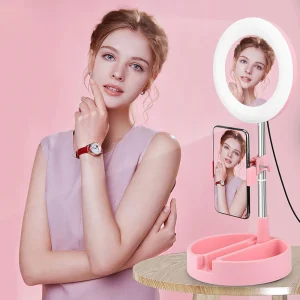 Anillo de Luz Retráctil 16CM con espejo de Maquillaje y Soporte para Movil, para Youtube TikTok/Transmisión en Vivo/Maquillaje