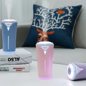 Humidificador Ultrasónico 280ml con Iluminación de Luz LED de 7 Colores, Humidificador de Aire Portátil de USB para Coche, Casa, Bebés