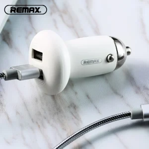 REMAX RCC 211 Cargador de Coche 3 en 1,DC12-24V, Cargador Mechero con Cable de Lightning y Adaptador de Tipo-C,5V-2.4A