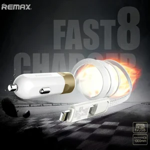 REMAX RCC 102 Cargador de Coche 3 en 1,DC12-24V, Cargador Mechero con Cable de Lightning y Adaptador de Tipo-C,5V-3.4A