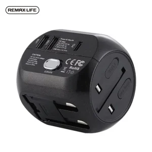 REMAX RL-EP08 Adaptador de Enchufe Universal de US/EU/UK/AU Macho y Hembra, con Un USB de QC3.0 y 2 USB de 2.4A,Adaptador Enchufe para Viaje