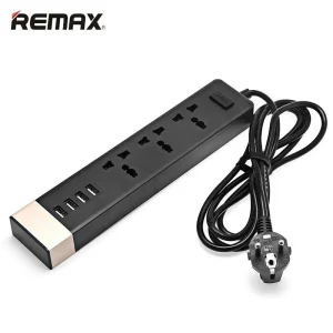 REMAX RU-S2 Regleta Enchufe Múltiples para Electricidad y USB, Ladrón Enchufe Europeo con 3 Tomas y 4 USB, Enchufe con Interruptor