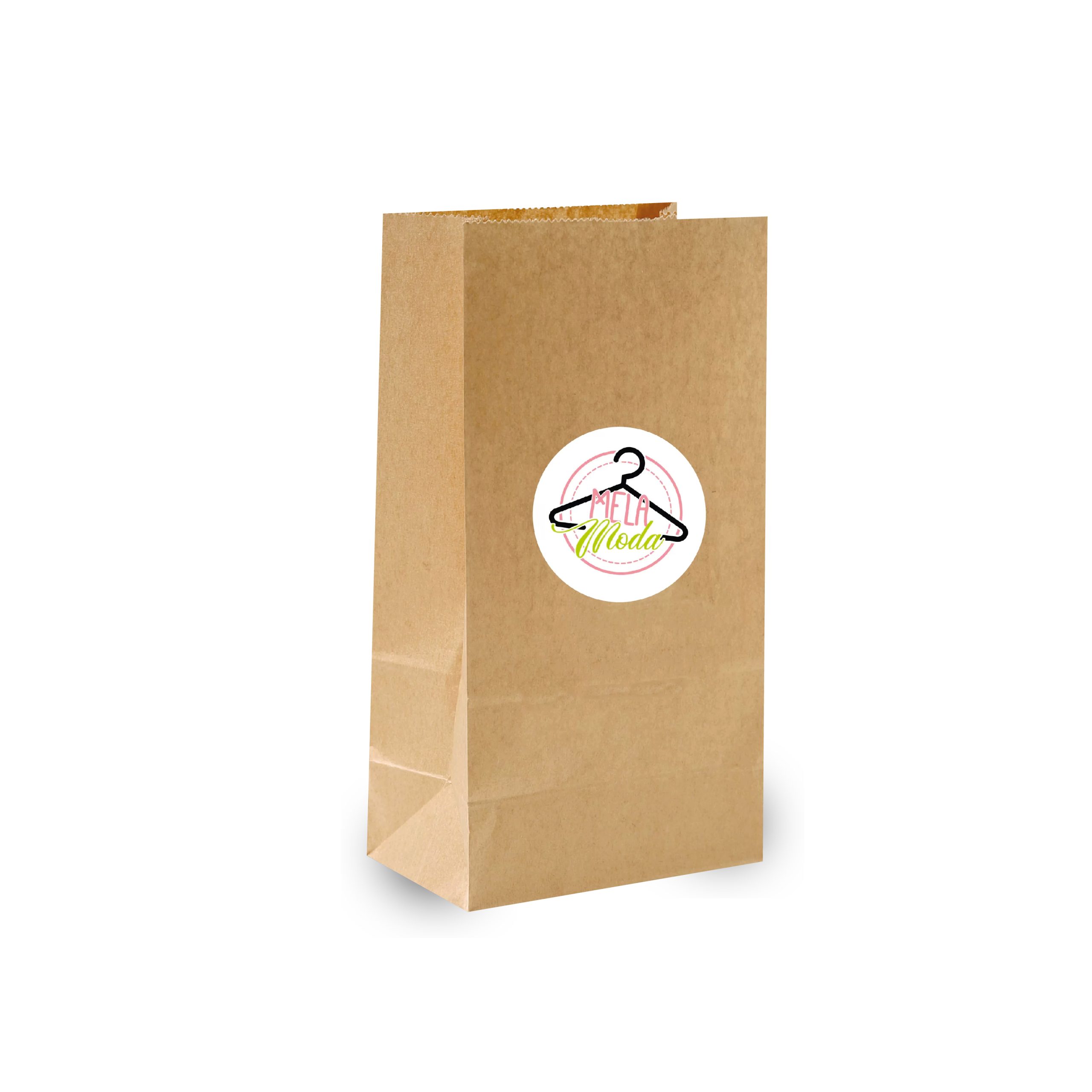 - Bolsa de papel en material biodegradable con sticker personalizado.
