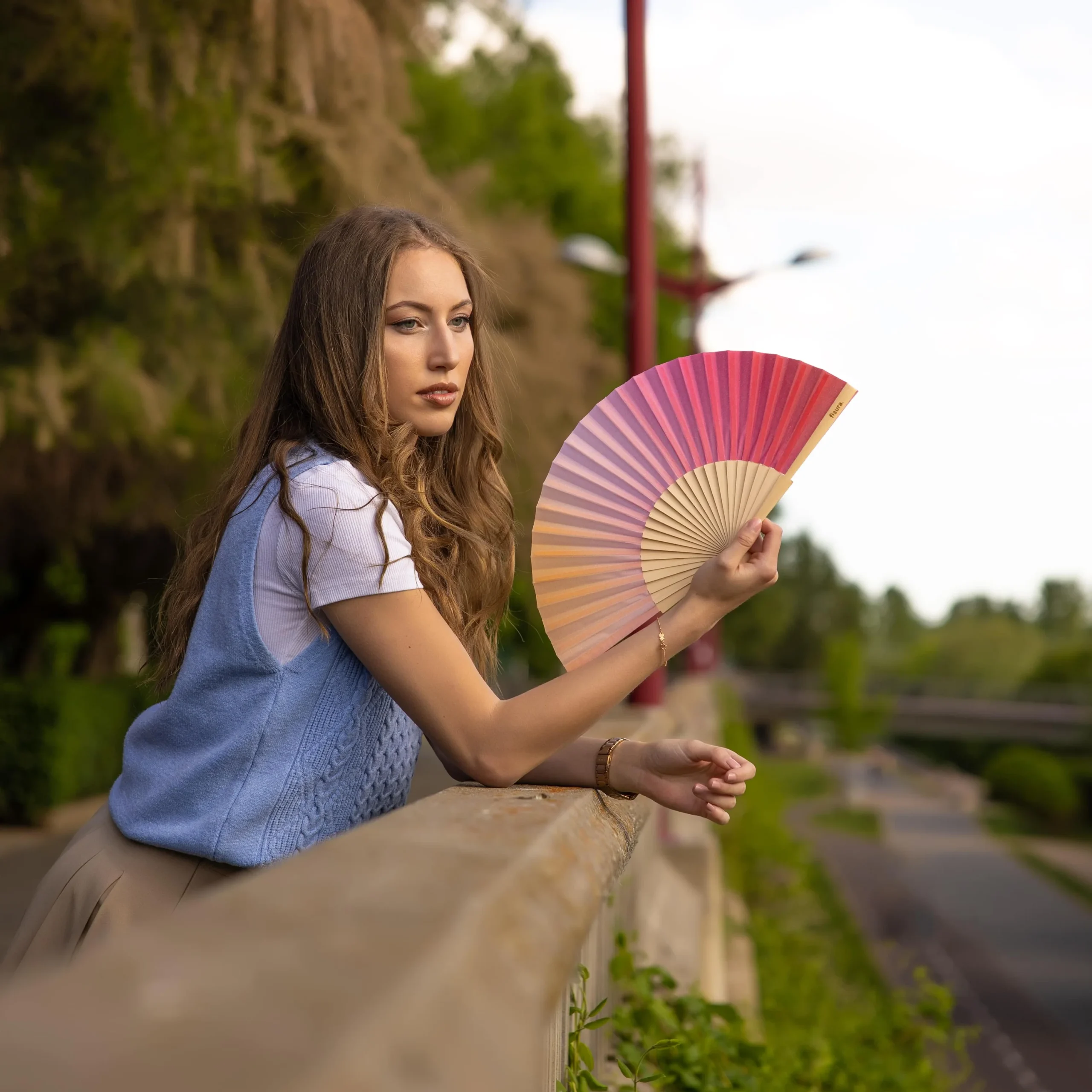 Enfréntate a la ola de calor y al sol que no para de brillar con este cómodo abanico degradado que quedará genial con todos tus “looks” veraniegos. Además, incluye un práctico colgador para que puedas tenerlo siempre a mano y que no se te pierda ni se te olvide. ¡Cuélgatelo y olvídate de rebuscarlo en tu bolso o mochila 🎒 cuando necesites abanicarte!