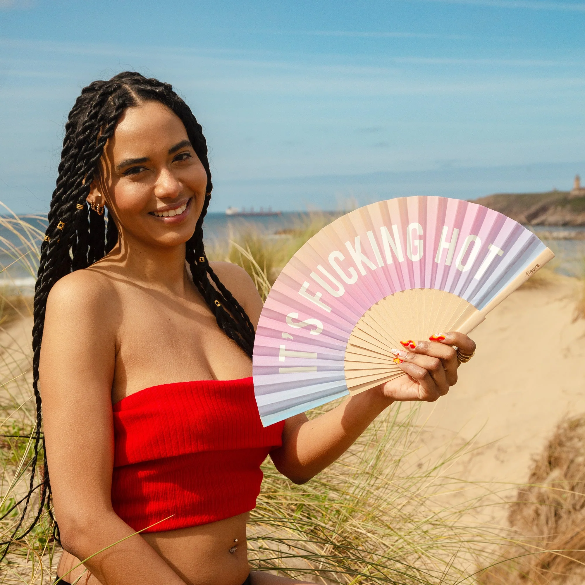 ¿Cómo no vas a estar harto del puto calor? No duermes bien, los mosquitos te devoran y un laaaargo etcétera. ¡Grítale al mundo que estás deseando que bajen las temperaturas con el abanico con mensaje en inglés “fucking hot” 🥵!