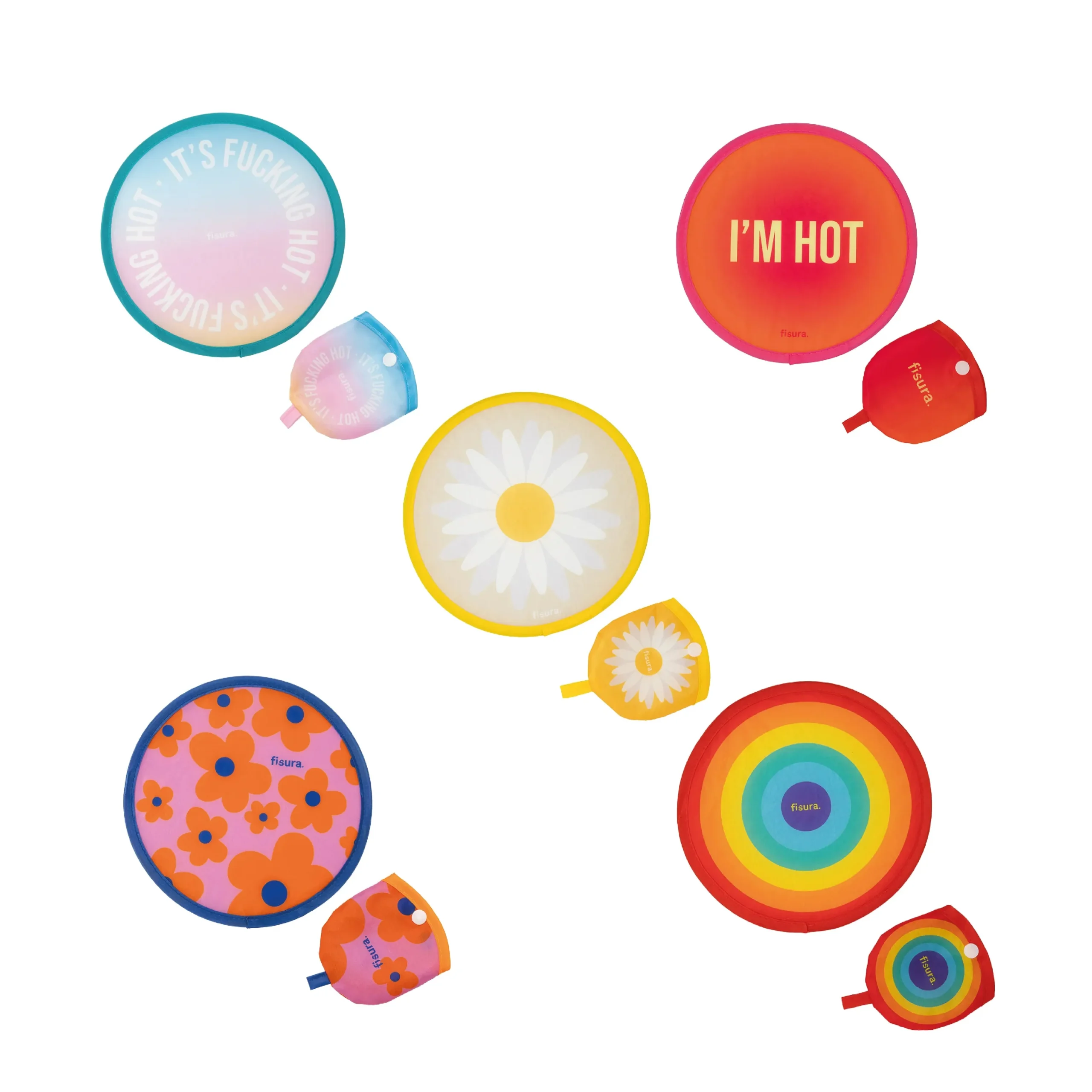 Combate las altas temperaturas con este pack de 5 abanicos originales con el que podrás elegir el ideal para cada ocasión: I’m fucking hot 🔥, I’m hot, margarita 🌼, flores 💐y arcoíris 🌈. ¡Un abanico para cada día, cada plan y cada look! Además, Con su tamaño de 9 cm cuando está cerrado, el abanico plegable es perfecto para llevarlo contigo a la playa, de paseo por la ciudad o a una ceremonia.