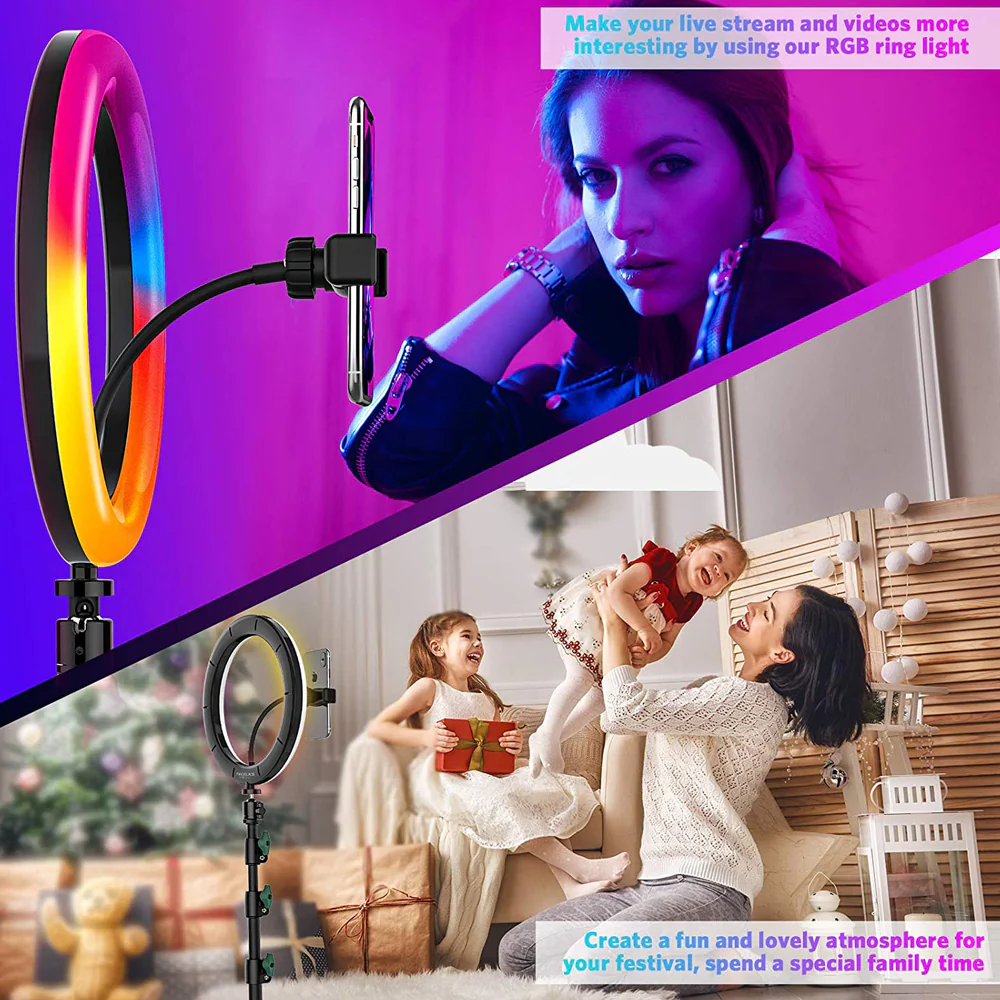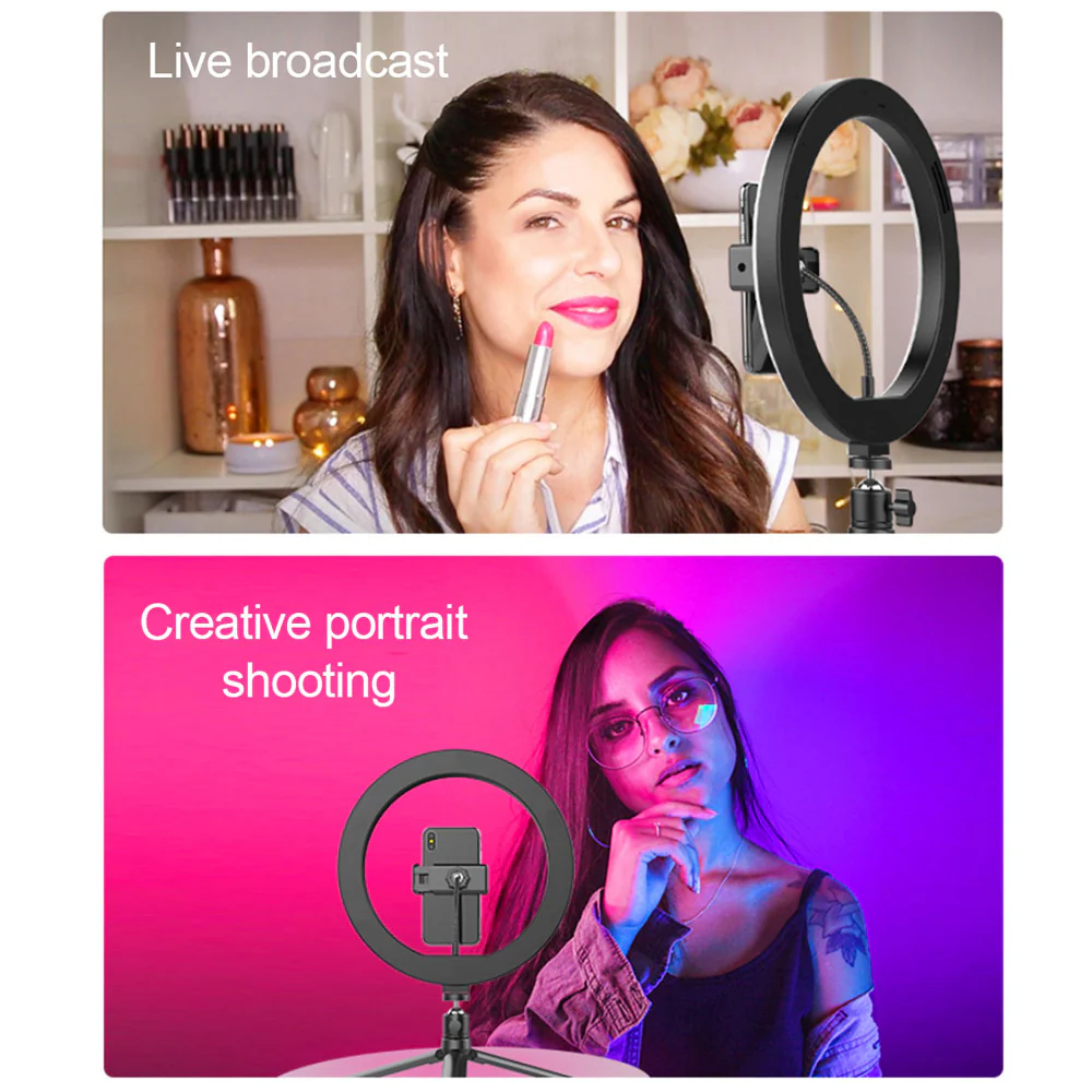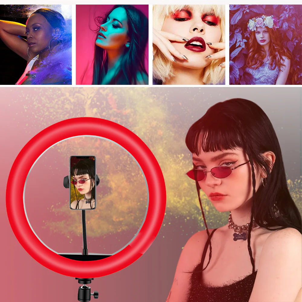 【Cuentas LED avanzadas】Nuestro anillo de luz selfie tiene cuentas de lámpara LED más brillantes, unidad de corriente constante y alta reproducción del color, suaviza la fuente de luz y mejora el tono de la piel en la fotografía de retratos, podría darte un mejor efecto de luz de relleno para iluminar la tez.