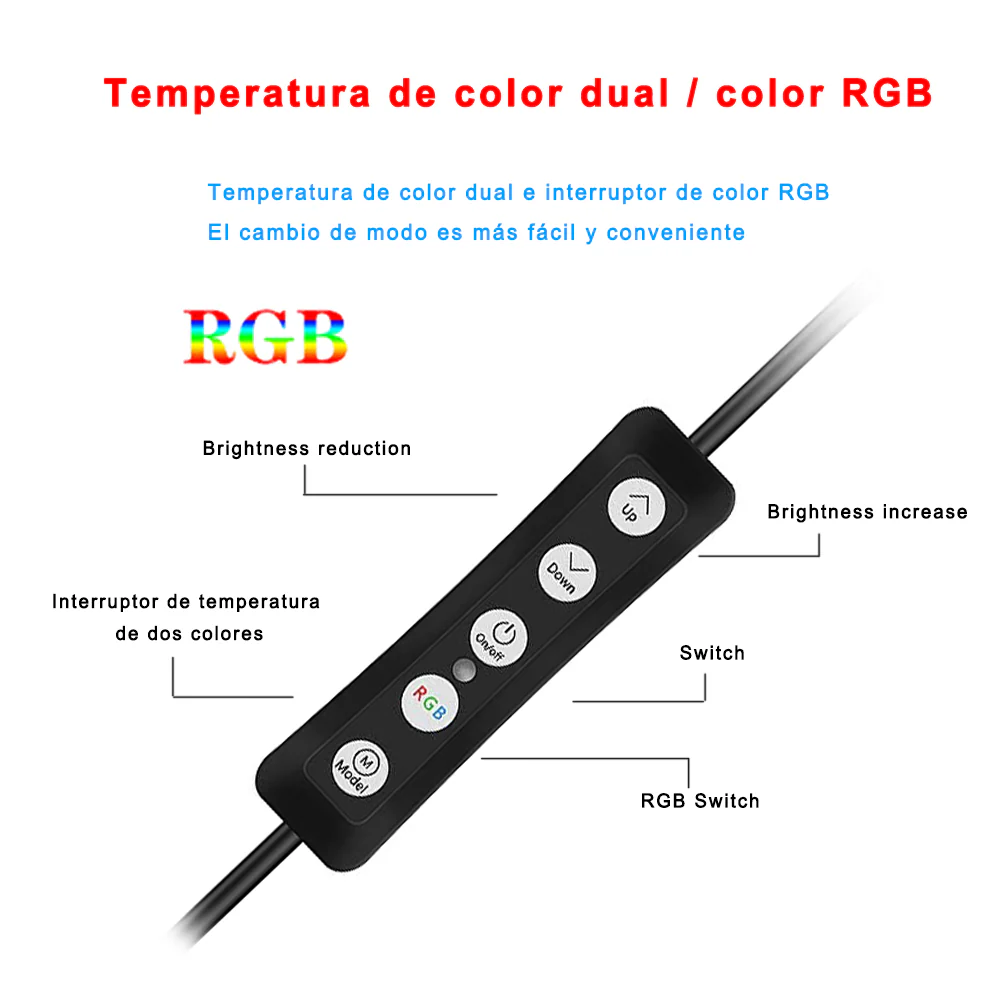 【Ajuste el color de la luz】Más de 150 configuraciones y 10 colores RGB: 3 luces diarias (blanco, blanco cálido, amarillo cálido) y 7 colores RGB (rojo, verde, azul, amarillo, violeta, azul cian, colorido), cada modo tiene 13 brillos con 1 Rango de atenuación de% a 100% para crear una atmósfera única.