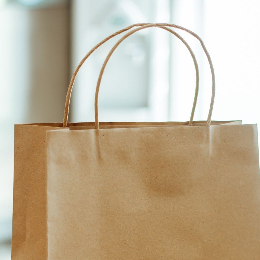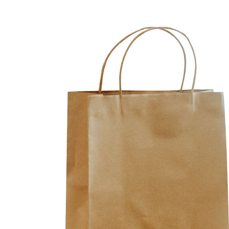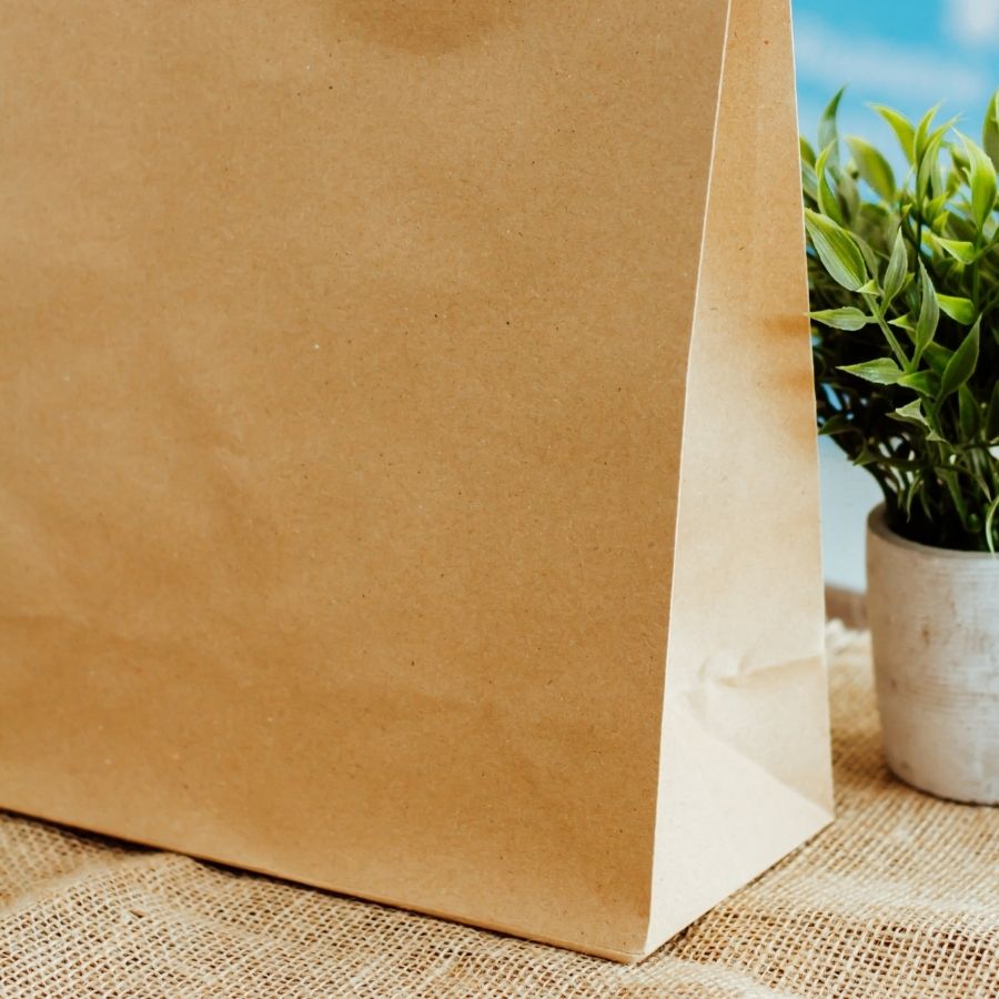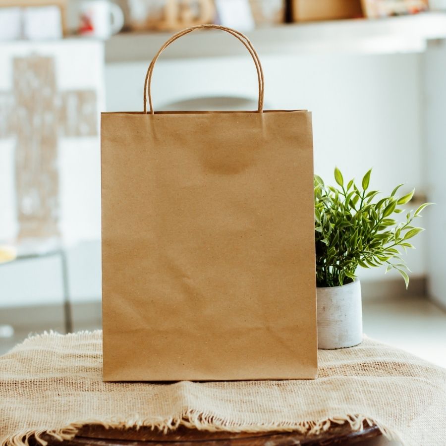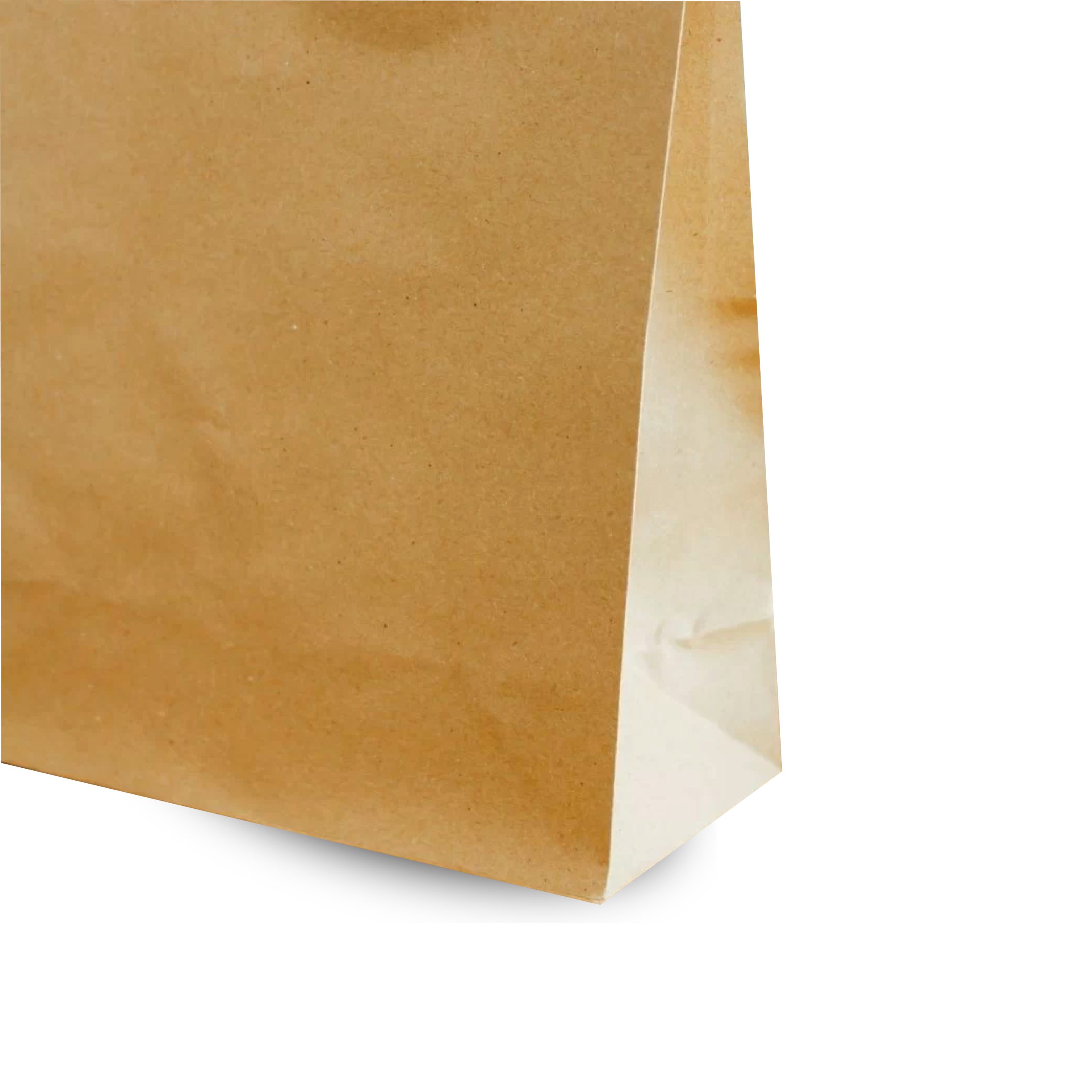 Bolsa de papel Kraft en material biodegradable con asa, medida de la bolsa 23.5×29.5×11 cm. Precio incluye IVA