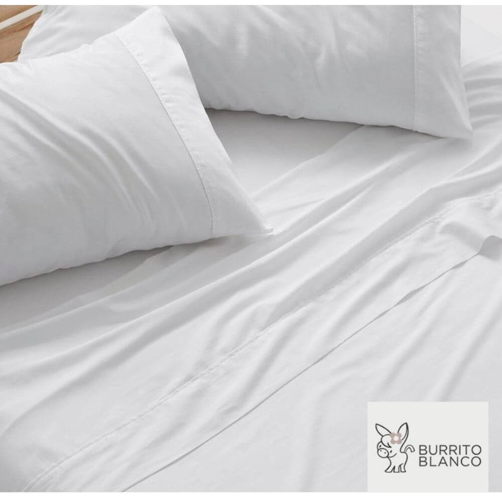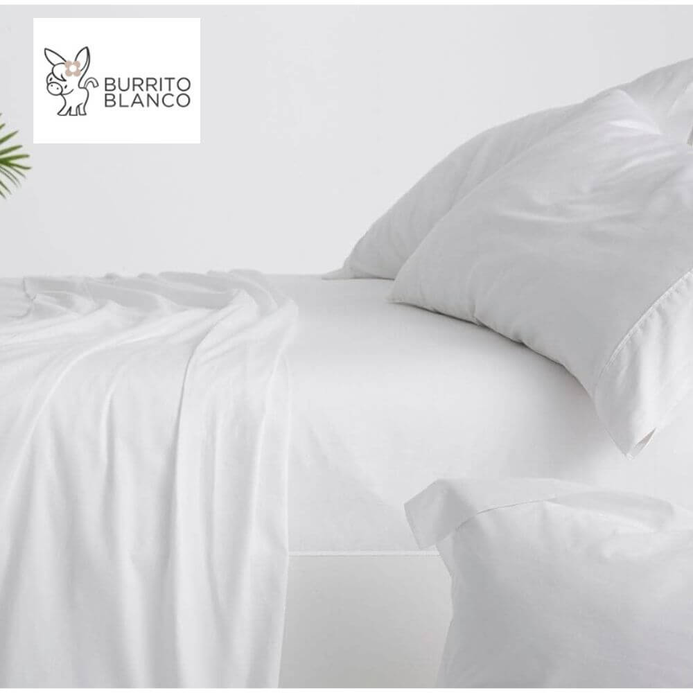- Juego de sábanas 100% algodón satén de alta calidad de 300 hilos, sanforizado y mercerizado, en color blanco con aplique y ribete blanco. Confección bajera ajustable. Almohada con aplique y ribete a juego.