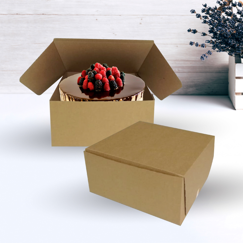 Caja de 8x8x5 pulgadas en cartoncillo sin impresión lista para llevar, puedes usarla para postres, alimentos o regalos. Si necesitas personalizarla puedes colocarle una viñeta o sticker (busca en la sección de Viñetas y agrega a la carretilla).