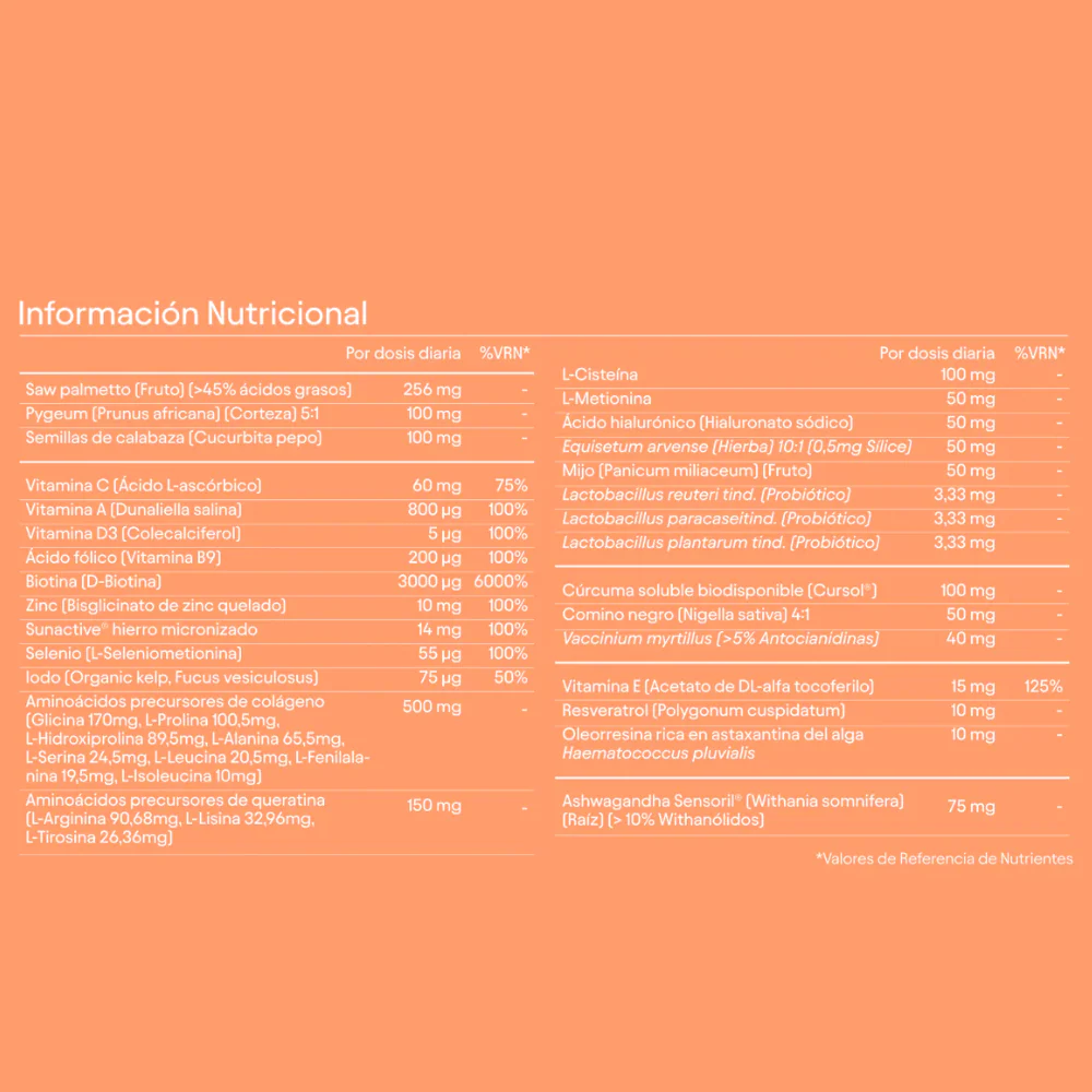 Complemento nutricional bebible diseñado para fortalecer, nutrir y combatir la caída del cabello femenino. PACK 3 unidades +1 champú.