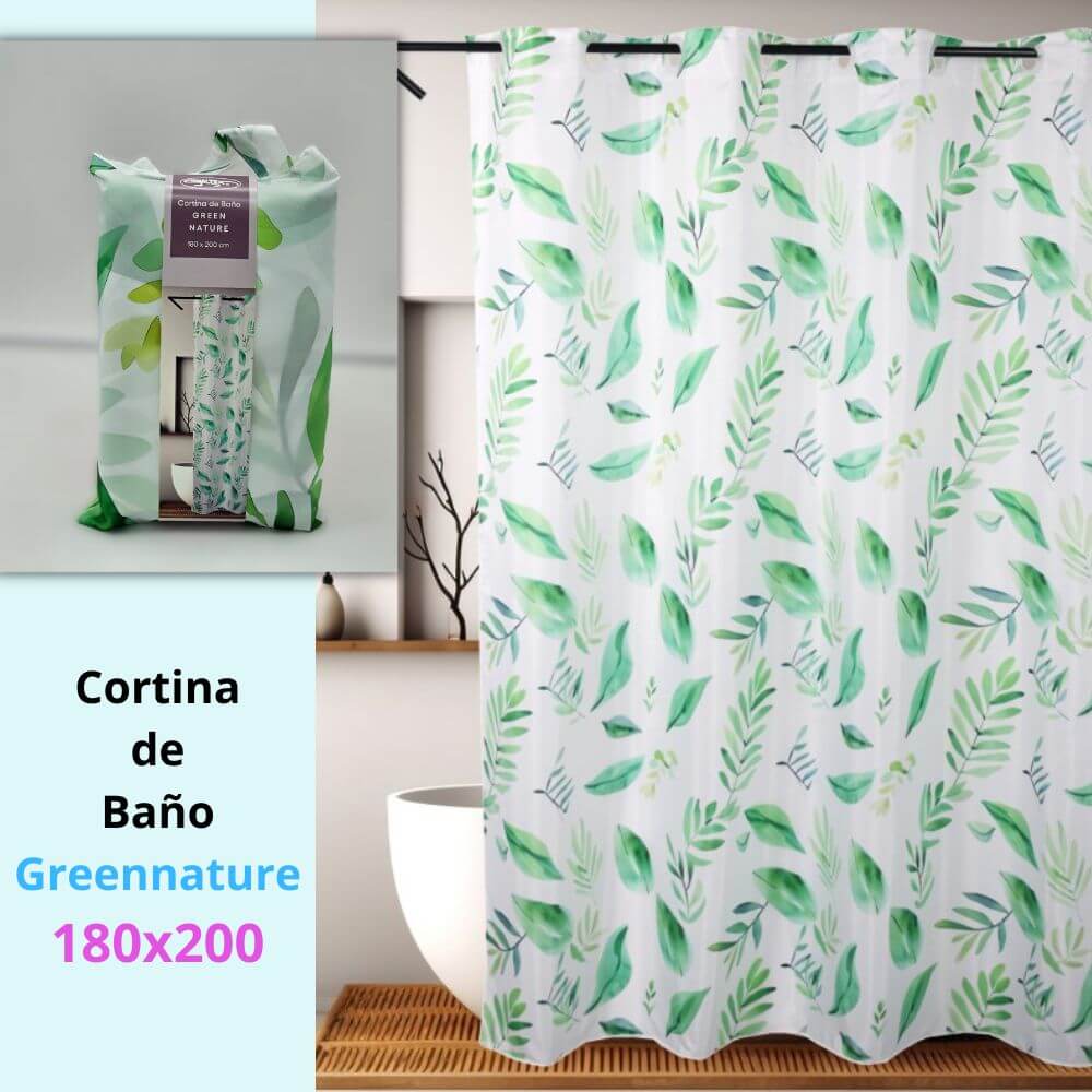 CORTINA DE BAÑO ESTAMPADA «GREEN NATURE» PARA DUCHA O BAÑERA