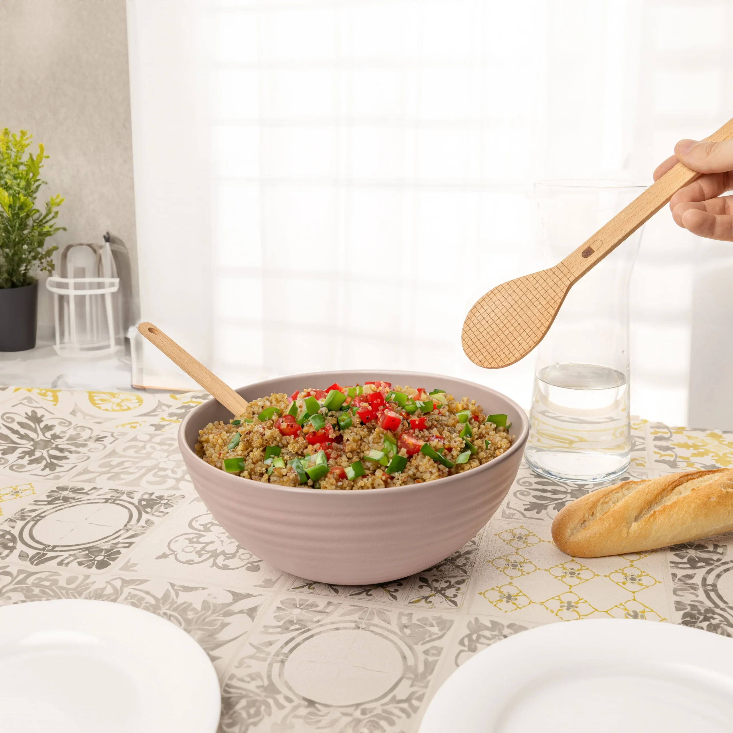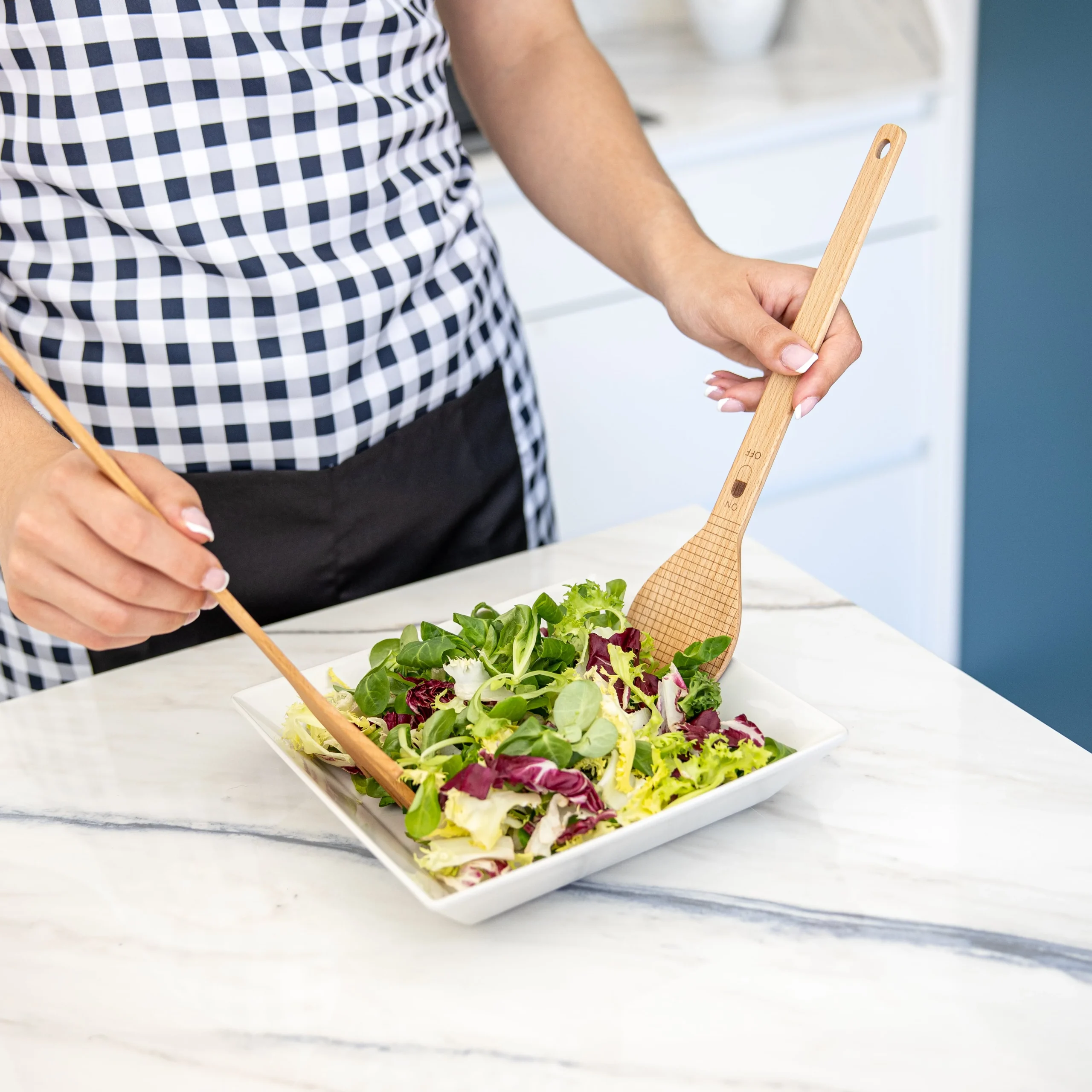 Estas 2 cucharas de madera están especialmente diseñadas para cuidar tus ollas y sartenes, ya que no rayan y son resistentes al calor. Su versatilidad te permite utilizarlas para revolver tus mejores recetas, como prácticas espátulas e incluso como cubiertos para servir ensalada. 🍴 Además, tiene un agujero en la parte superior, así que podrás colgarlas y lucirlas en tu cocina. ¡Un toque de funcionalidad y originalidad que hará que tus comidas sean aún más mágicas! 🌿