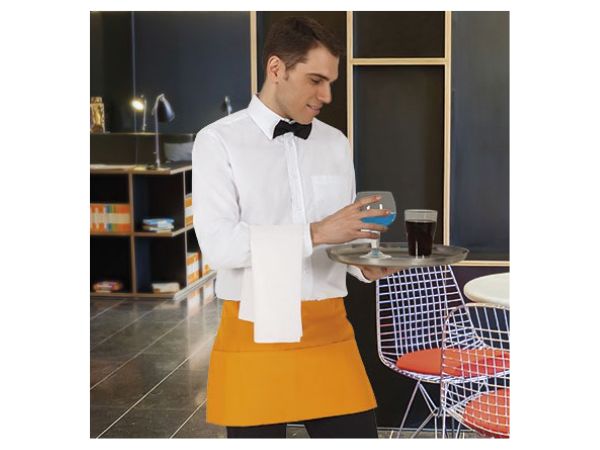 El Delantal Coffee es un delantal corto y funcional, con una amplia variedad de usos. Está hecho de tela de sarga, una tela sólida de patrón diagonal, resistente y de larga duración. Cuenta con un borde cosido y una cinta gruesa para ajustar. Tiene un bolsillo grande con divisiones para alojar diferentes objetos útiles. Se ofrece en una gran variedad de colores. Es de Talla Única. Se vende por unidades.