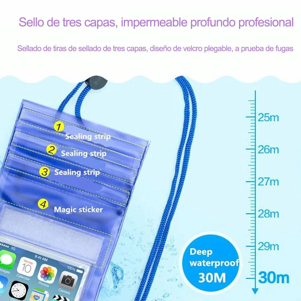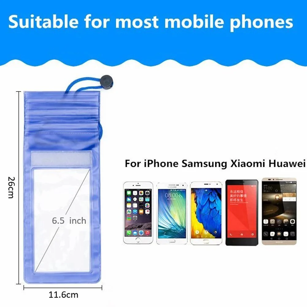 La bolsa impermeable para teléfono está especialmente diseñada para artículos cuyo tamaño es inferior a 6,5 pulgadas. Compatible con mayorías de móviles.