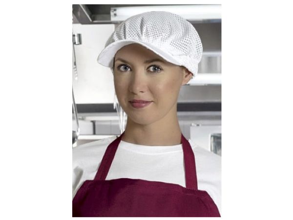 Si tienes el pelo largo y trabajas en lugares donde hace calor como una cocina, la Gorra Smoothy es ideal para ti. Es una gorra de tela de rejilla que deja pasar el aire. Tiene una visera dura con tela por encima, y una parte de atrás grande con una goma que se adapta a tu cabeza. Así puedes meter tu pelo dentro de la gorra. La puedes encontrar en blanco o en color negro y está disponible en Talla Única. Se vende por unidades.