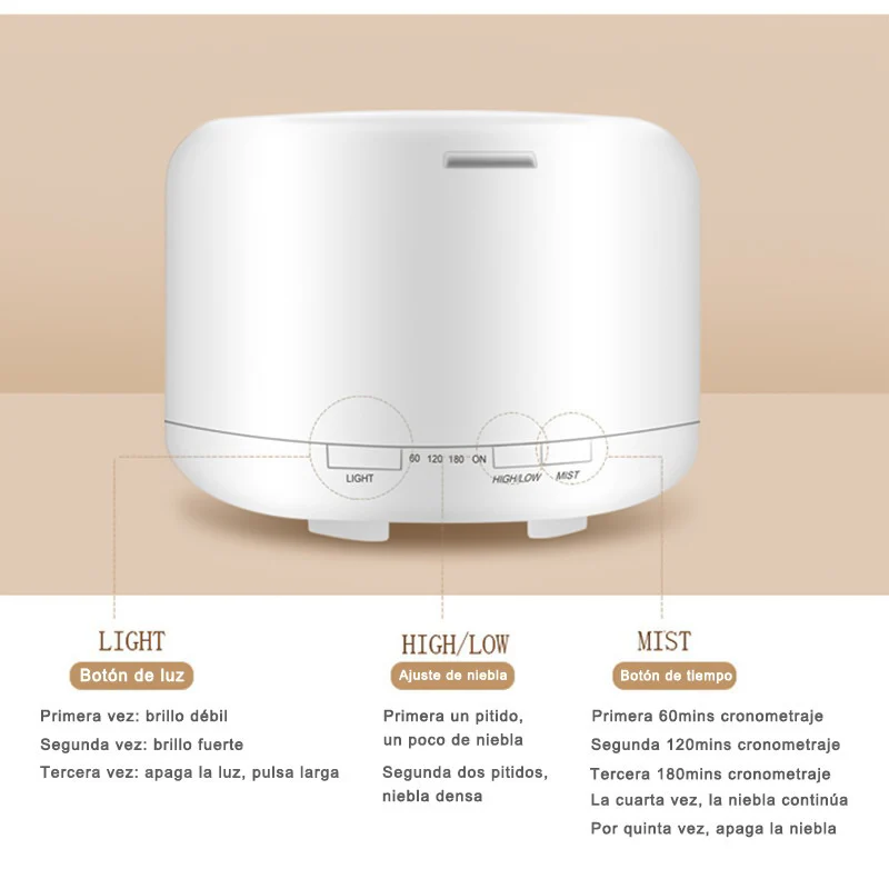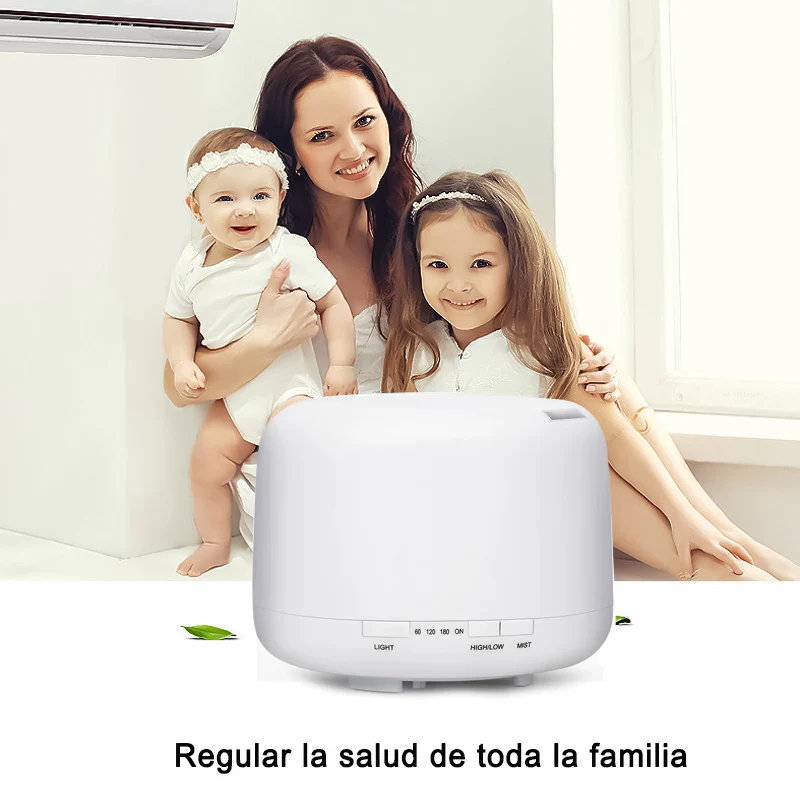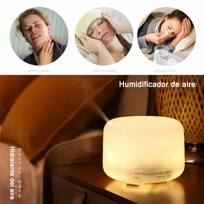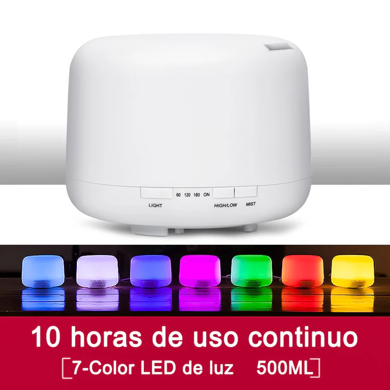 Humidificador 500ml Difusor Aceites Esenciales Ultrasónico, Humidificador de aire, humidificador con Luz Nocturna de 7 Colores