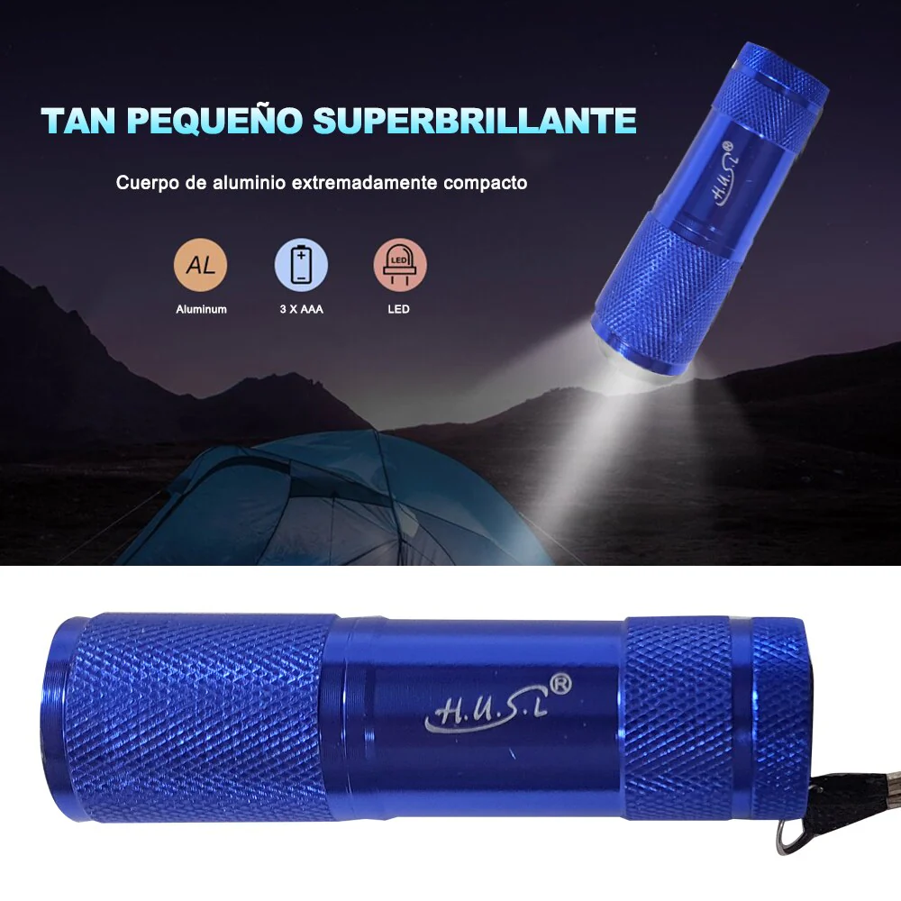 【Alto brillo】 Linternas led súper brillantes. 9 bombillas LED de lumen 50-60 aseguran su uso durante la noche, Cubren un amplio campo, trabaja con 3x pilas de AAA(Las pilas están incluidas).