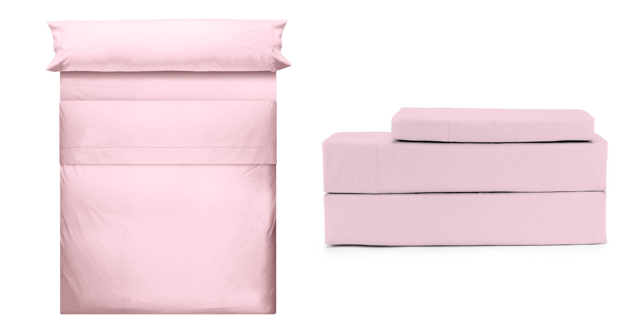 Juego de sábanas 100% algodón peinado de 200 Hilos y tacto suave. 3 piezas (1 Encimera + 1 bajera + 1 funda Almohada) y 4 piezas (1 Encimera + 1 bajera + 1 funda Almohada)