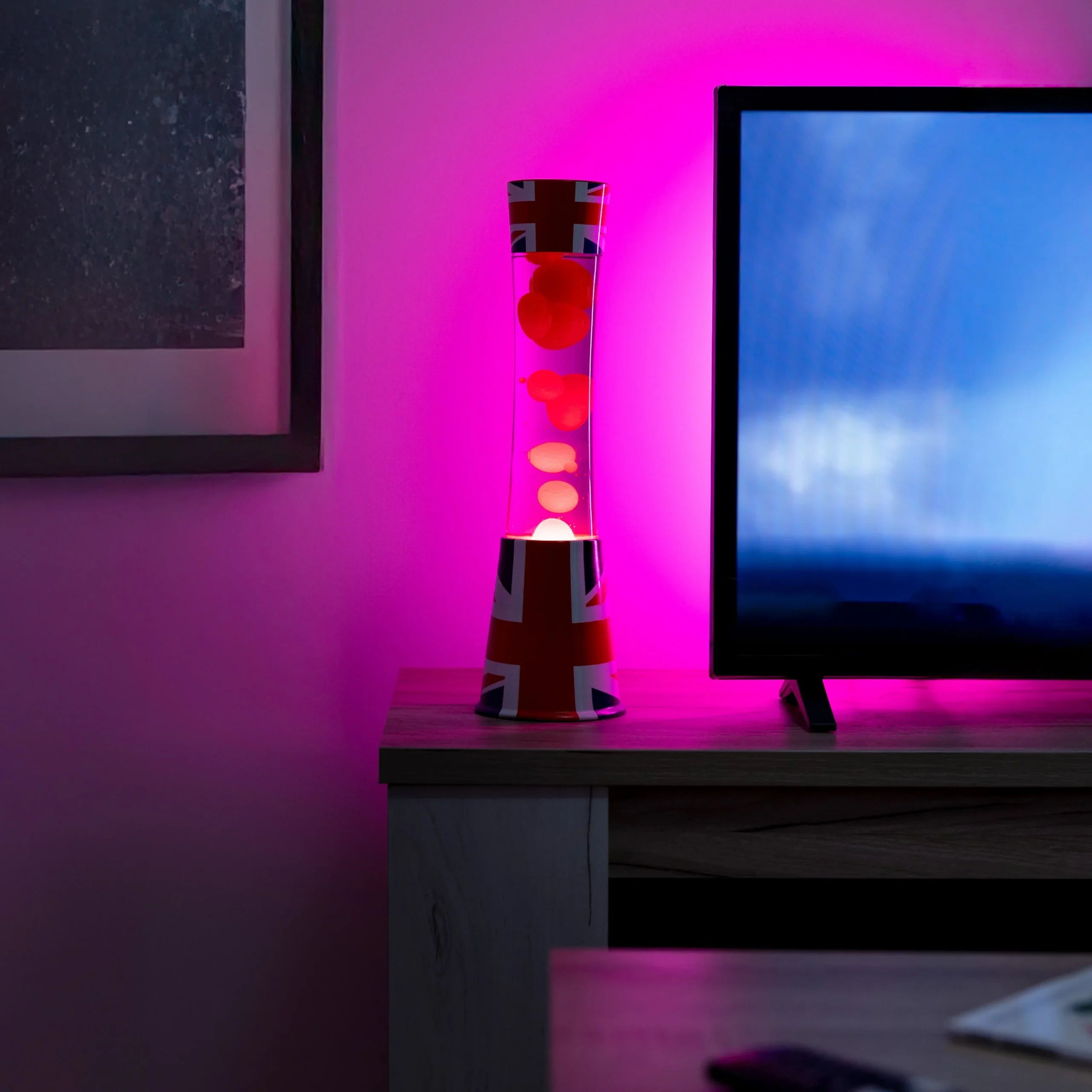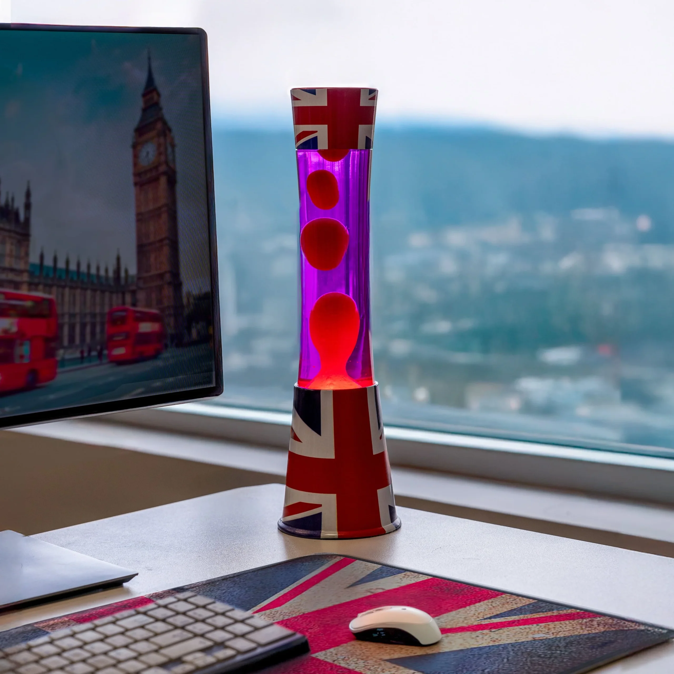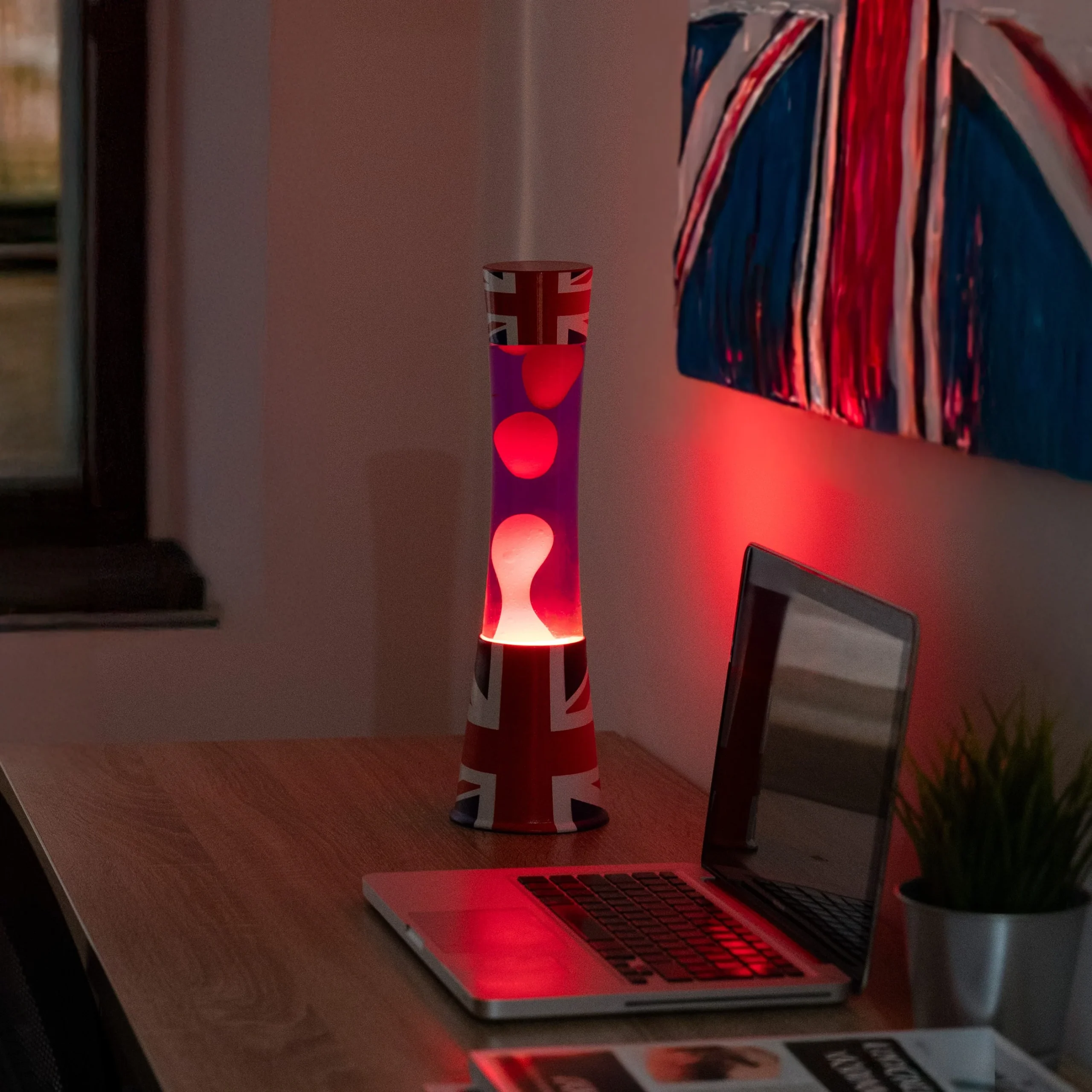 Ilumina tu hogar con un toque de estilo británico con esta lámpara de lava con estampado de la bandera del Reino Unido. Con su clásico diseño y su mezcla de azul y rojo, esta lámpara no solo es un homenaje al espíritu “british”, sino también un espectáculo visual que transformará cualquier rincón de tu casa en una escena digna de Londres.