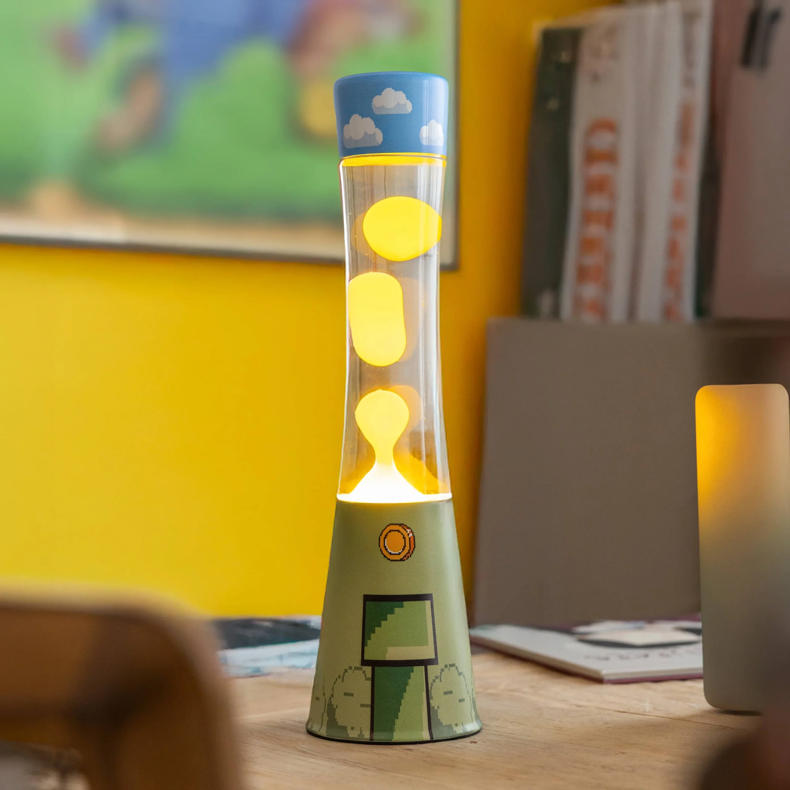 Sumérgete en el universo gamer 🎮con esta lámpara de lava con estampado de videojuego retro. Con su diseño, la lámpara original hará que tu setup luzca más épico que nunca, mientras que el movimiento de la lava le dará un toque relajante. ¡Es ideal para tu estantería, escritorio o cualquier otro rincón de tu hogar!