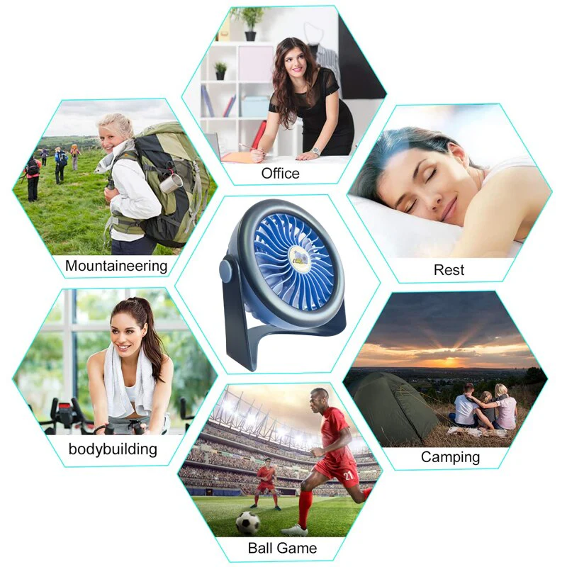 3. Ventilador alimentado por batería recargable, ventilador alimentado por USB con batería de iones de litio de gran capacidad, se puede cargar con cargador USB, ordenador, cargador de móvil.