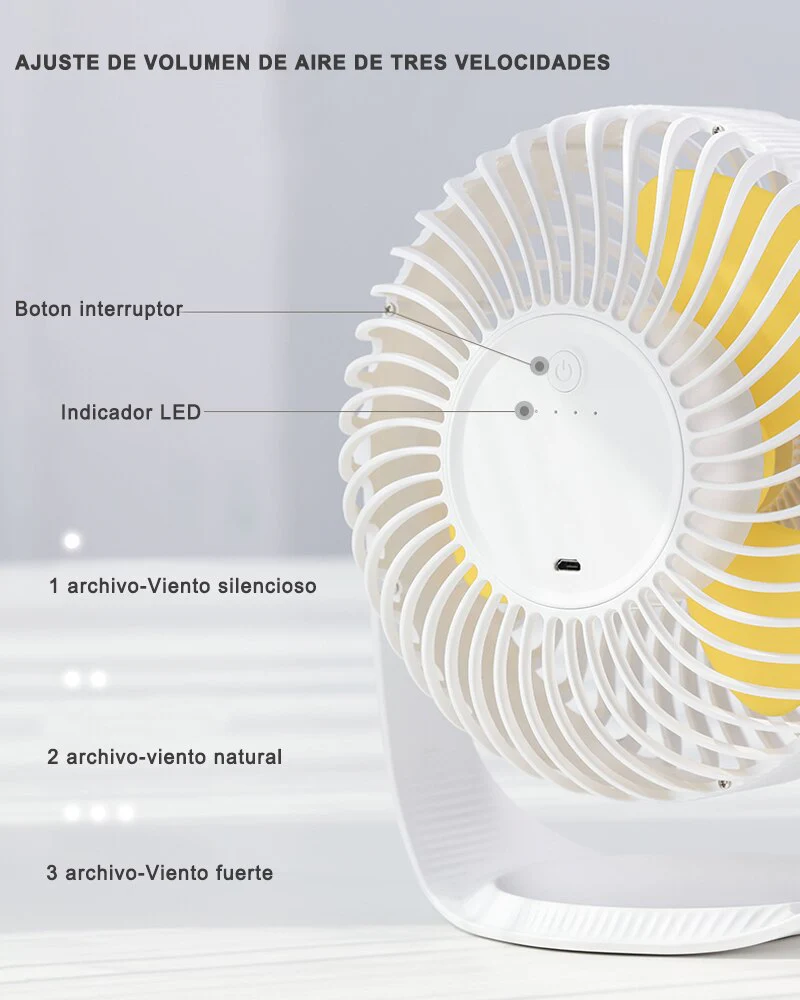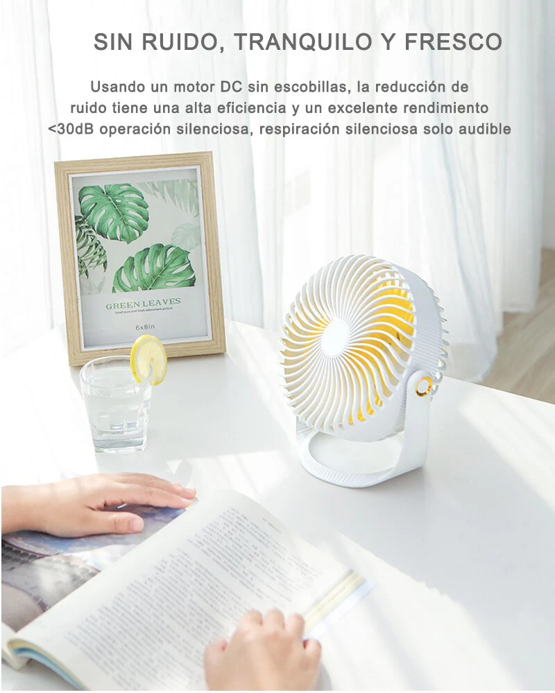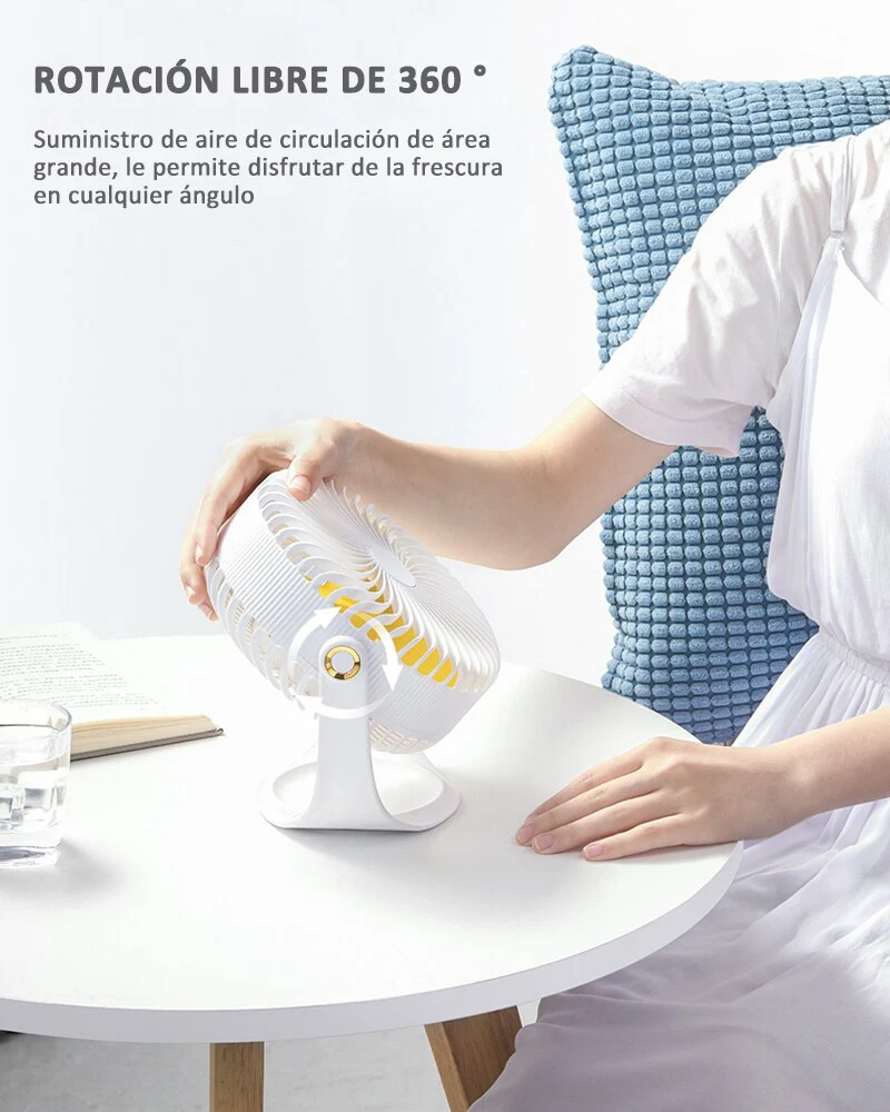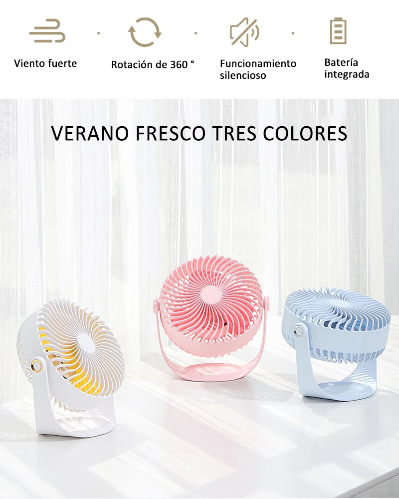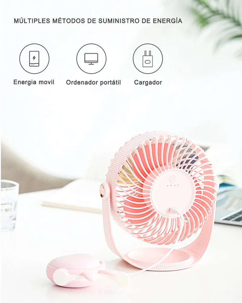 1. Ventilador USB de banda de siete pulgadas recargable ventilador de escritorio giratorio de 360 grados.