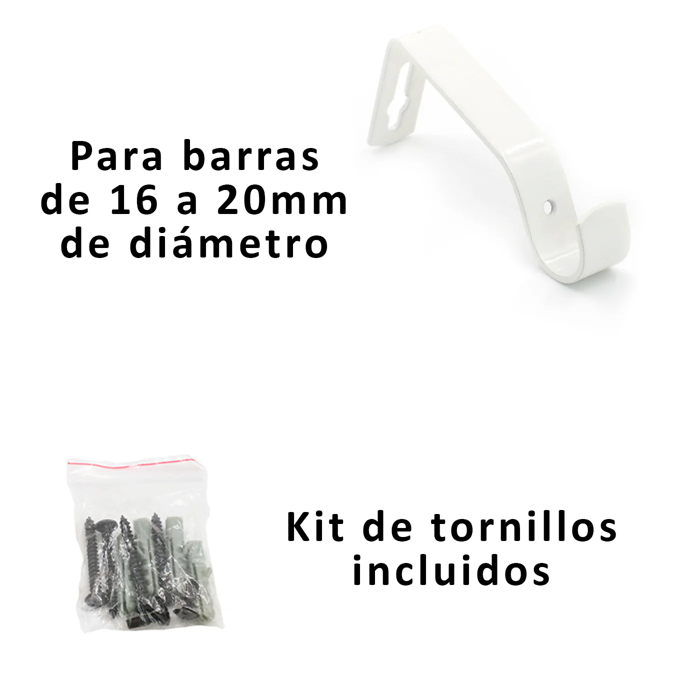 Soportes de Barra de Cortina para Barra de Ø 16-20mm- Metal Blanco