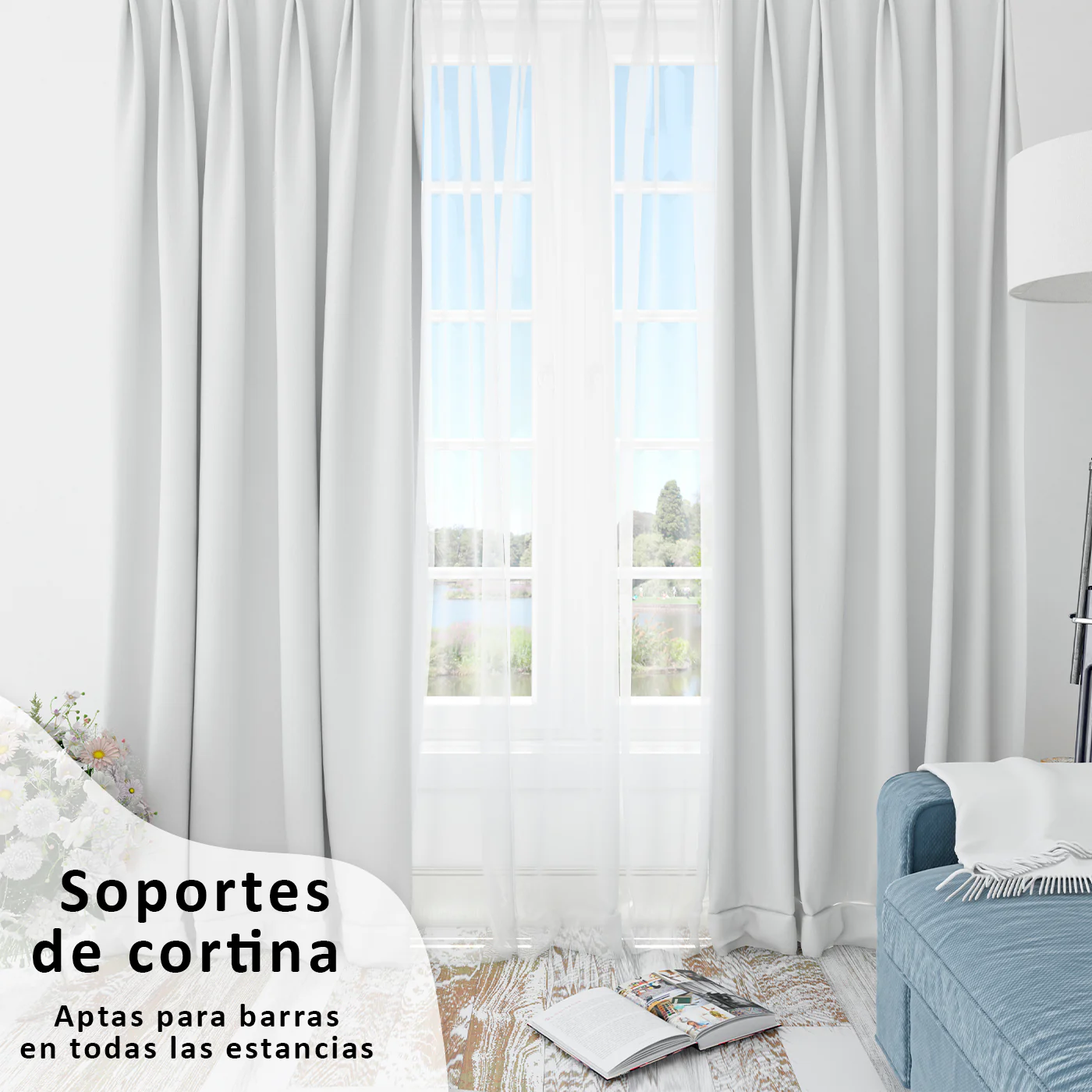 • MEDIDAS: Los soportes son aptos para barra de 16-20 mm de diámetro. Aportan estabilidad a la barra de cortina