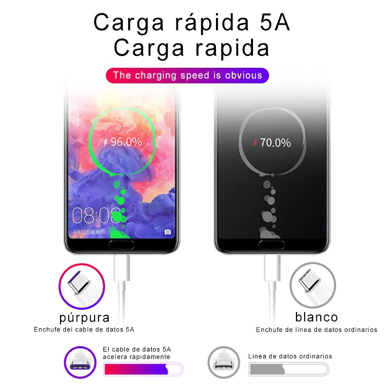 【HUAWEI Supercharge y Transferencia de Datos Rápidas】: Cable usb c 5A puede cargar todos los teléfonos HUAWEI a toda velocidad. Nota: Utilice este cable usb c con el cargador de adaptador original SuperCharge de HUAWEI, de lo contrario reducirá la velocidad de carga.