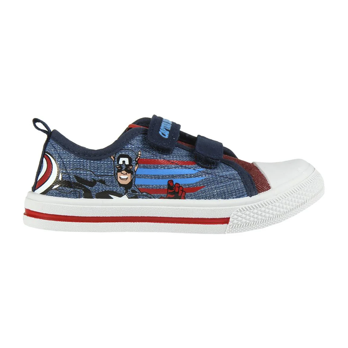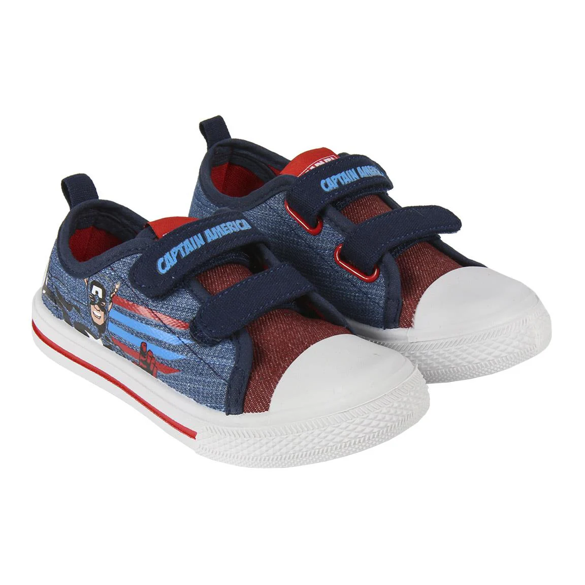 Zapatilla Loneta Baja Avengers Capitán América, fabricada en máxima calidad, impresión a todo color, cómodas y ergonómicas, con velcros para facilitar su colocación.