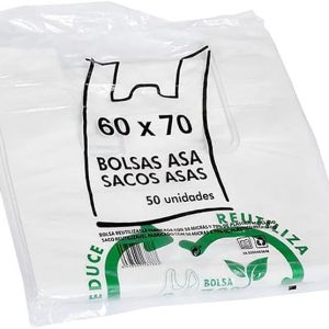 50u Bolsas De Plástico Reciclado, Resistentes, Reutilizables de Galga 200, Cumple Normativas, Aptas Uso Alimentario (60x70cm)