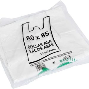 50u Bolsas De Plástico Reciclado, Resistentes, Reutilizables de Galga 200, Cumple Normativas, Aptas Uso Alimentario (80x85cm)